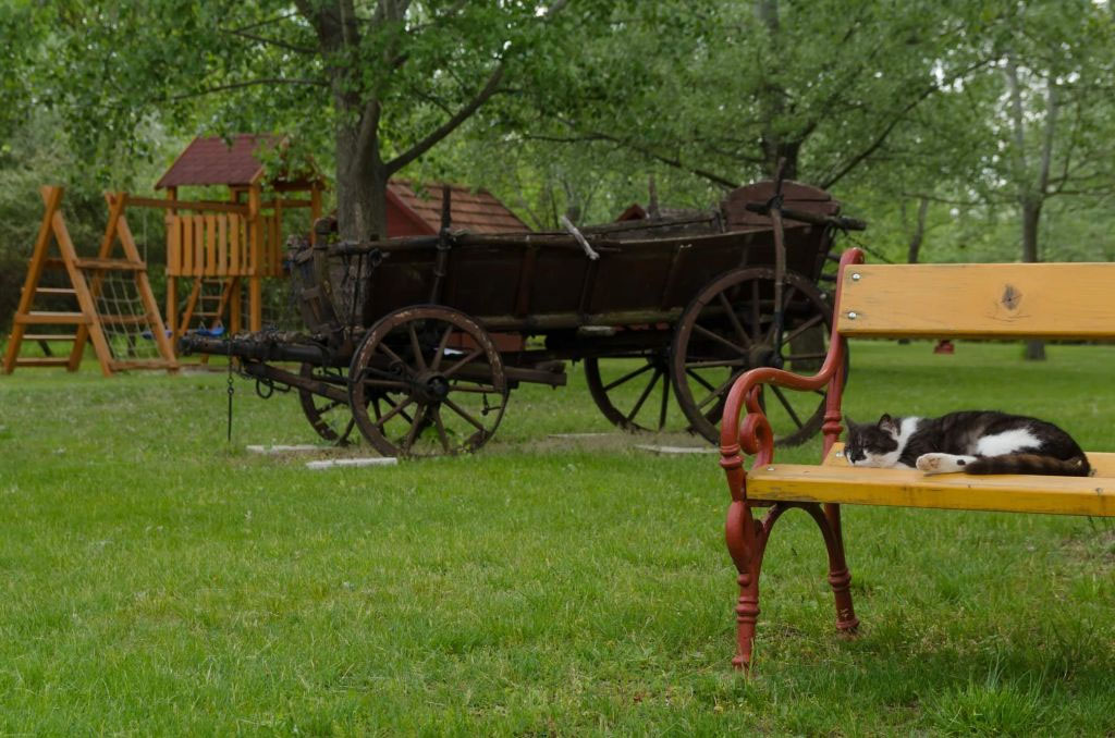 Csodálatos környezet, virágokkal és fákkal borított udvar, mini játszótér és mezítláb szaladgáló gyerekek. Mindez egy varázslatos erdő közepén, elrejtve mindenki elől, aki nem szántszándékkal ide tart. Már a bekötő utca is magántulajdon, így valóban csak az járhat erre, aki ide készült egy kicsit megpihenni, feltöltődni, kikapcsolódni.